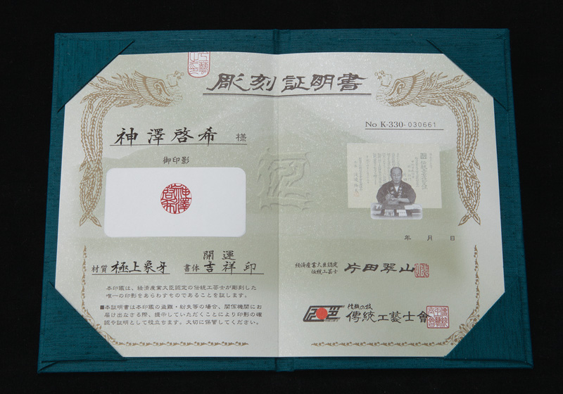 翠玉堂の手彫り印鑑です。出産・新入学・就職のお祝いや自分へのご褒美にいかがでしょうか? 個人実印男性は16.5〜18mm女性は15〜16.5mm個人銀行印男性は15〜16.5mm女性は13.5〜15mmをおすすめします。 伝統工芸士彫刻証明書彫刻士 片田翠山刻印 彫刻証明書をお付けいたします 唯一無二の印鑑であること を証明いたします トカゲ 大鶴ケース 御宝印桐箱 開運吉祥印GⅠ(柘植) 開運吉祥印GⅠ(黒水牛) 開運吉祥印GⅠ(白水牛) 開運吉祥印GⅠ(象牙) 丈は60mm お値段は税込となります 開運吉祥印GⅡのサイズ・料金はこちら サイズ・価格はこちらから ・お値段の目安・一般印相印・開運樹徳印CⅠ・開運樹徳印CⅡ・開運吉祥印G1・開運吉祥印G2・開運珠玉印 Facebooktwitter